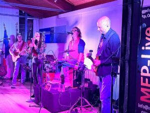 Peter Weigerding aus Grügelborn, der auch für die gesamte Veranstaltungsreihe verantwortlich zeichnet, war mit seinem Unplugged-Trio „MEP-Live“ zu Gast. Weigerding, in der Band für den Rhythmus verantwortlich, sitzt dabei auf einem Cajon, das mit zahlreichen Erweiterungen zu einem interessanten Set ausgebaut ist. Unterstützt wird er am Bass von Ernesto Schmitt aus Frankfurt/Main und Mario Scheufler aus Brücken/Pfalz an der Gitarre. Beim Auftaktkonzert am 15.04. präsentierte das Trio die Sängerin Sabrina Boncourt aus Saarlouis, die in der saarländischen Musikszene keine Unbekannte ist.
