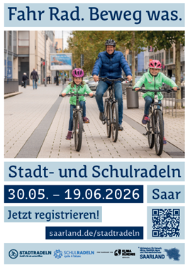 Auch in diesem Jahr nimmt die Gemeinde Freisen wieder an der Kampagne „Stadt- und Schulradeln“ des Klima-Bündnis Services und des saarländischen Ministeriums für Klima, Mobilität, Agrar und Verbraucherschutz teil. Unter dem Motto „Fahr Rad. Beweg was.“ können wir mit vielen gefahrenen Kilometern punkten und benötigen daher Ihre Mithilfe! Vom 30.05. bis 19.06.2026 können KommunalpolitikerInnen, Vereine, Unternehmen und BürgerInnen Teams bilden und können 21 Tage lang für ihre Kommune und ihre Schule in die Pedale treten bzw. um die Wette radeln.